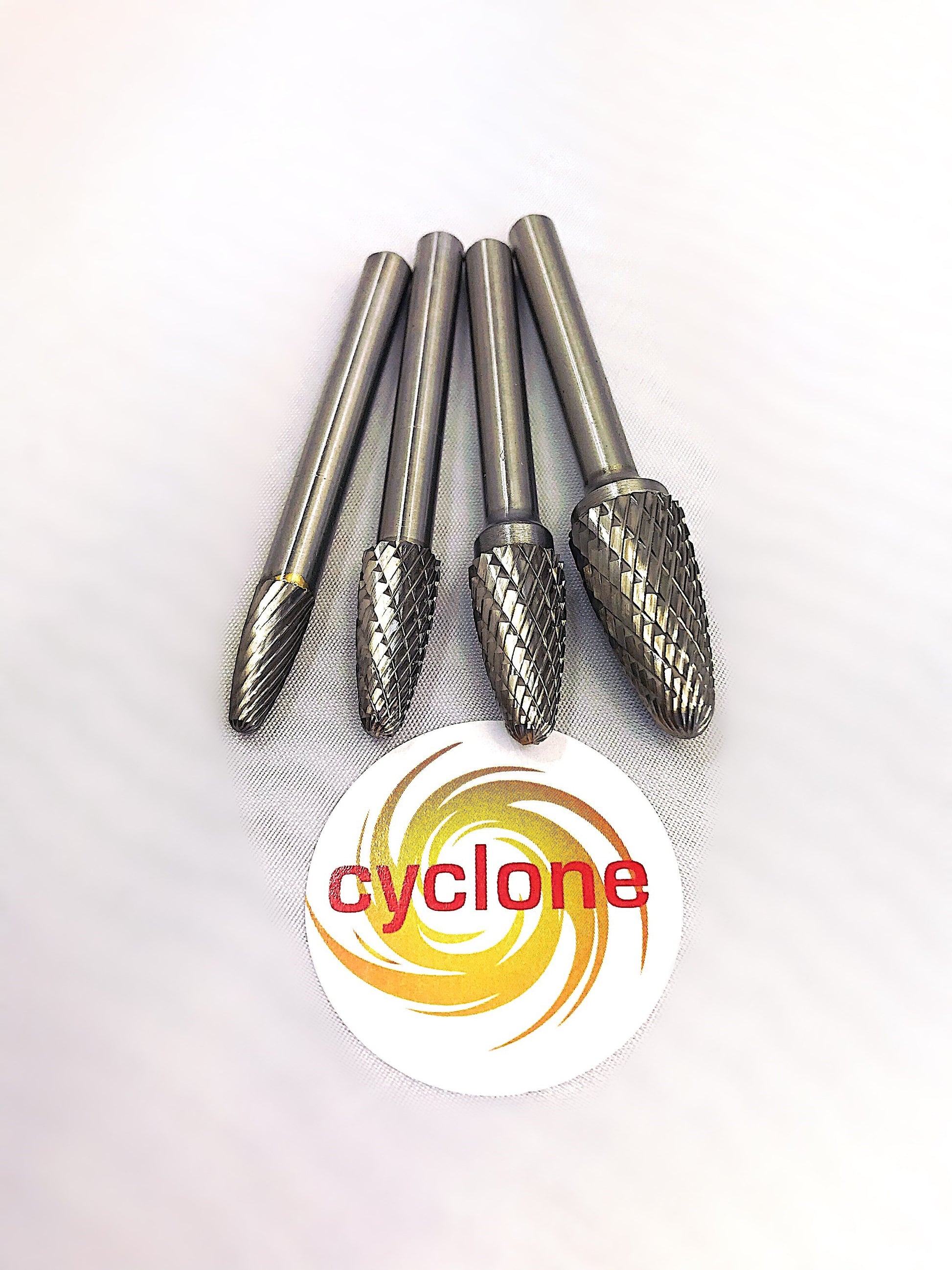 Our F shaped Rounded Tree Burrs are made from micro grain carbide providing a clean and sharp cutting edge to each flute ensuring maximum cutting potential and life longevity. Please do not compare this product with cheap imported goods, this is an Excel "Cyclone" branded item.