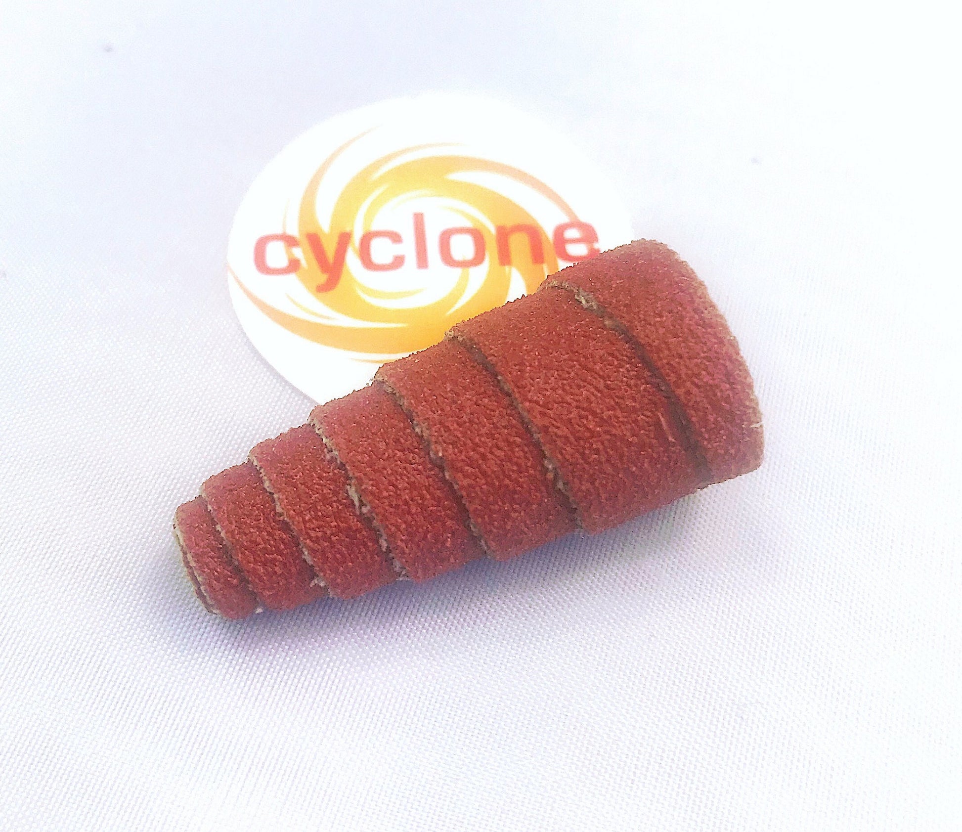 Cartridge rolls are made from rolling up a pieces of abrasive clothe into a cylindrical or tapered head. They are really good for light de-burring and used on the end of a self tightening threaded shank.